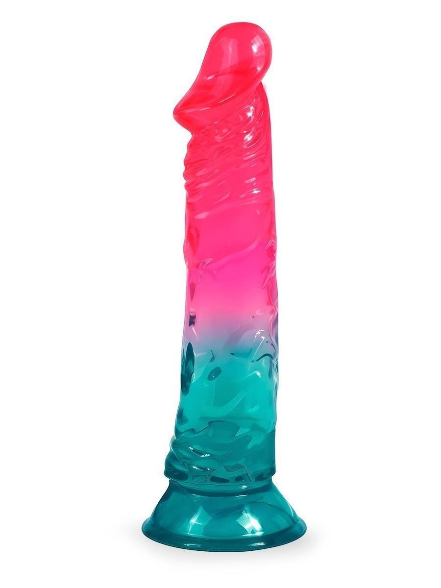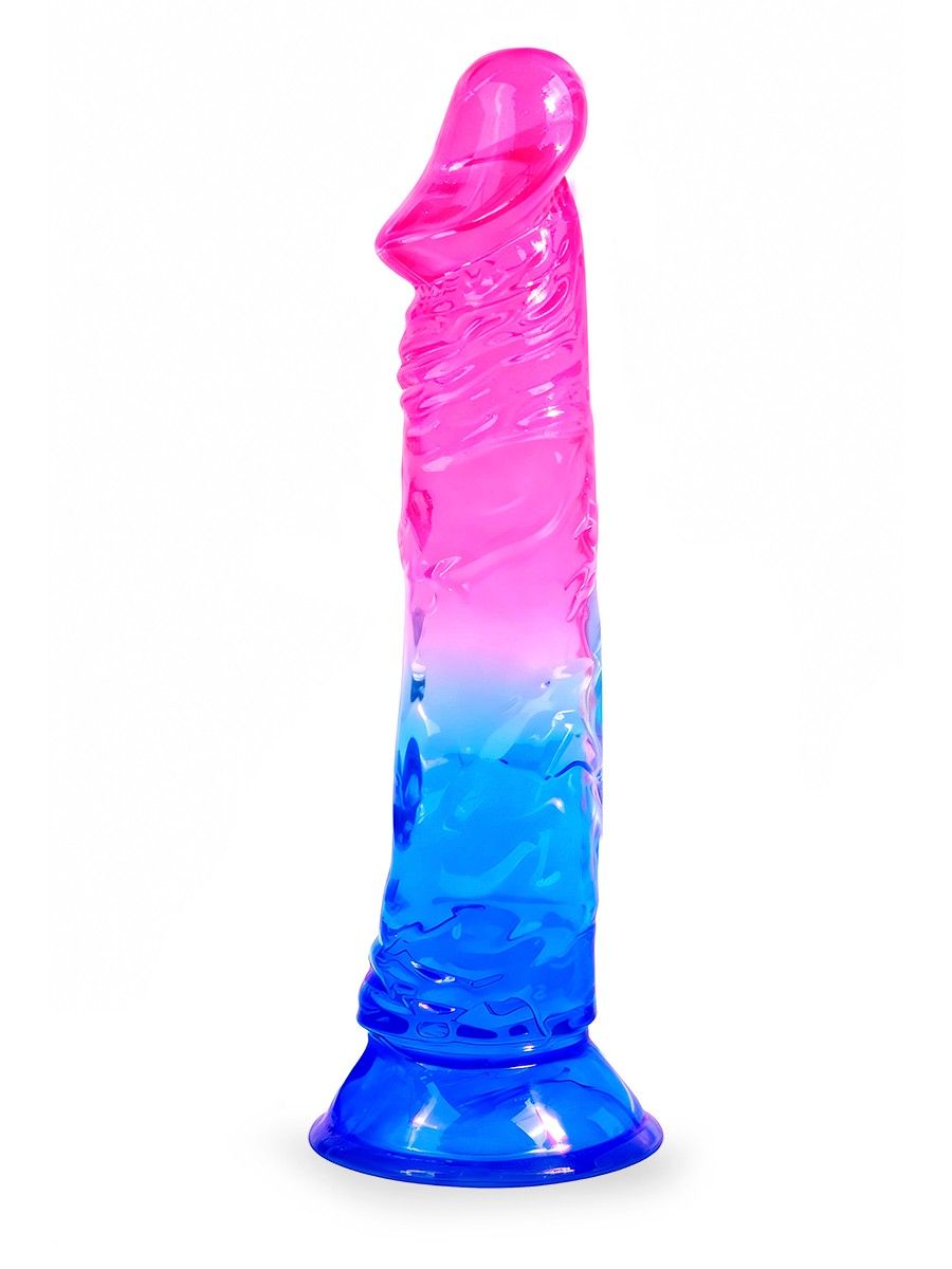 Яркий розово-синий фаллоимитатор с присоской