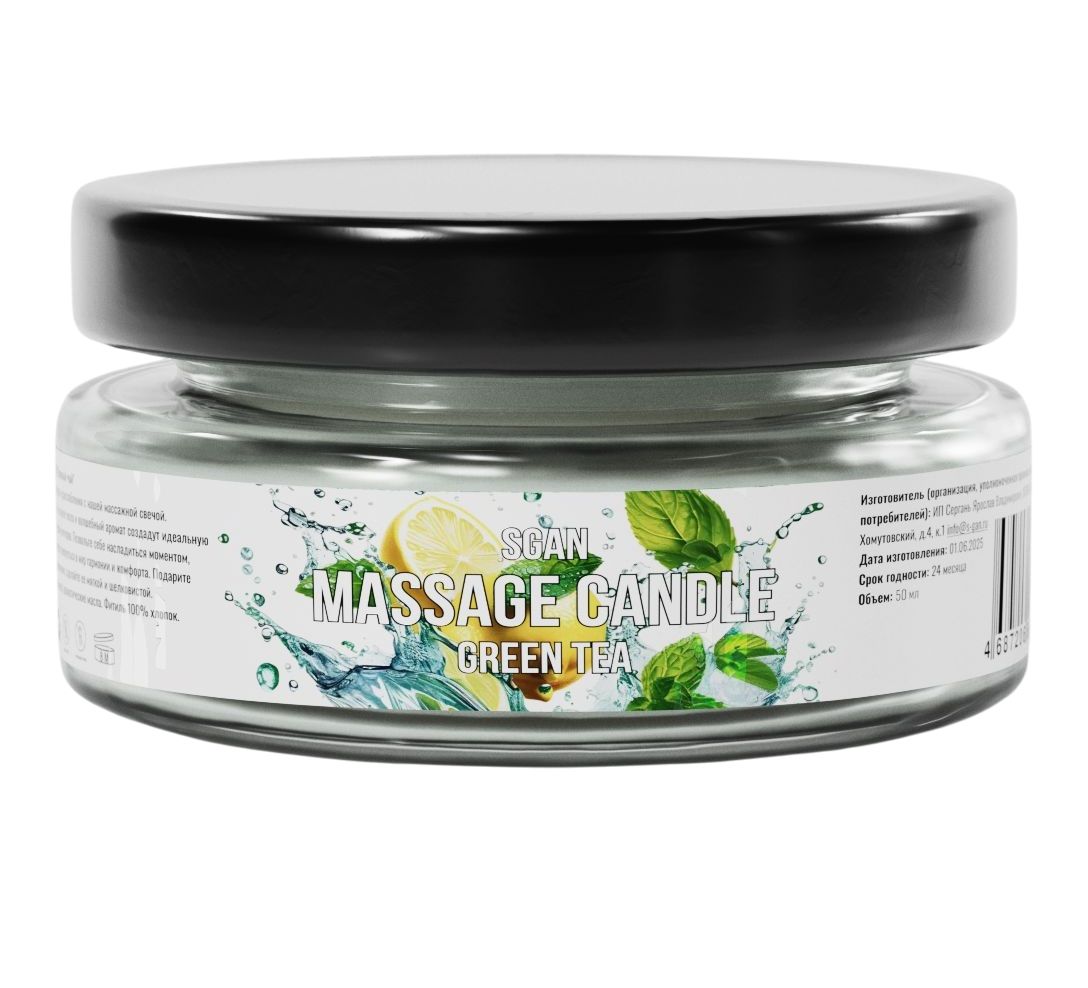 Массажная свеча с ароматом зеленого чая SGAN в стеклянной банке — это натуральное средство для расс..