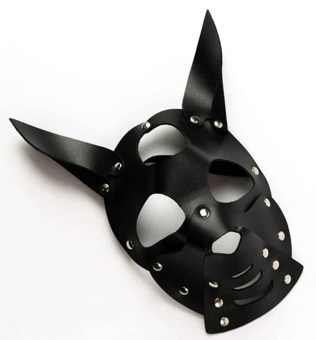 Маска Собака с ушками выполнена из натуральной кожи. Декорирована металлическими заклепками. ..