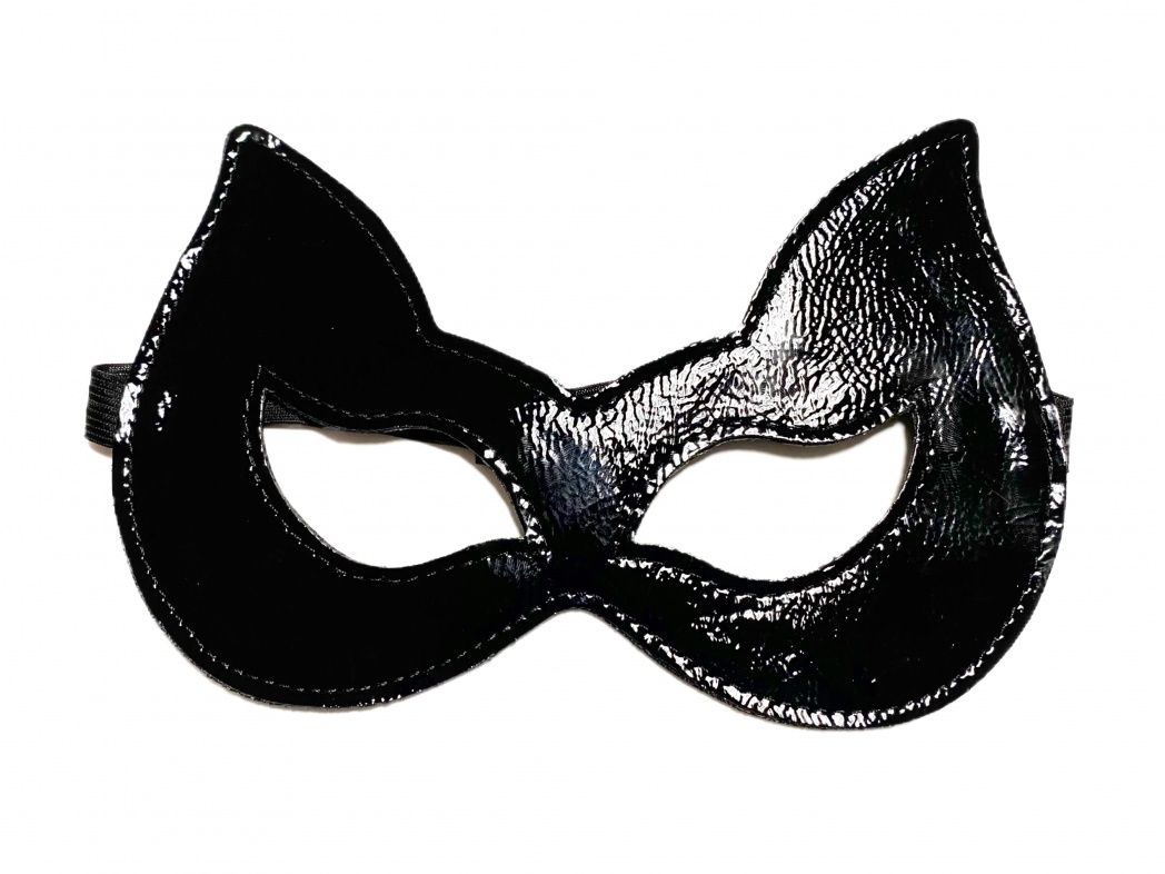 Черная лаковая маска с ушками из эко-кожи