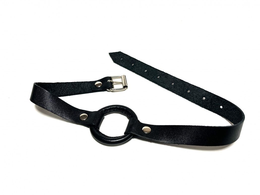 Черный кляп-кольцо на кожаных ремешках