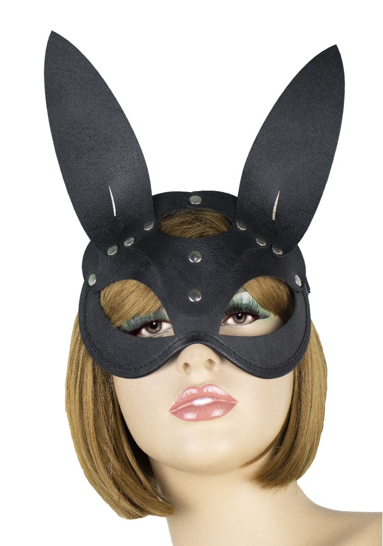 Игривая маска с ушками, выполненная из черной эко-кожи. Лицевая сторона сделана из лакового материал..
