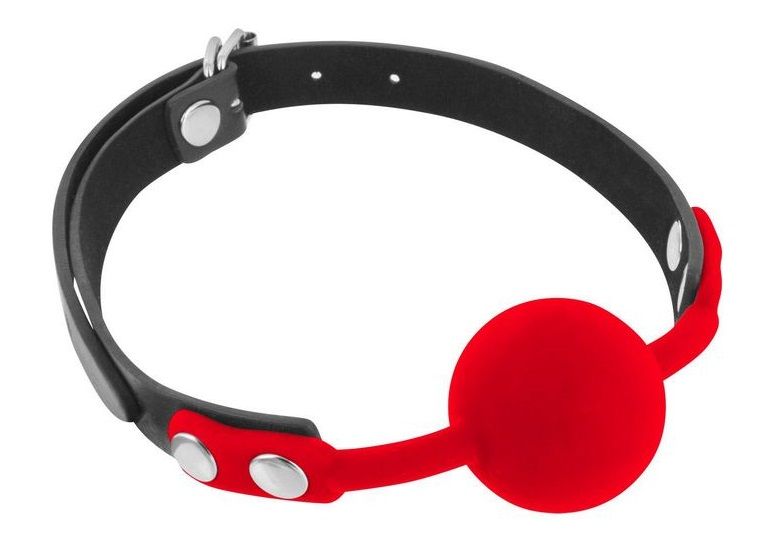 Красный кляп-шарик на черных ремешках