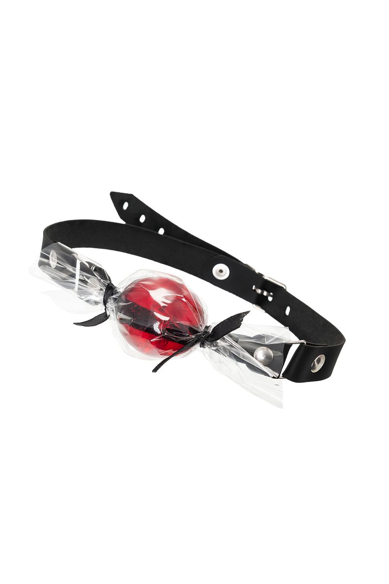 Красный кляп-леденец на кожаных ремешках со вкусом виски