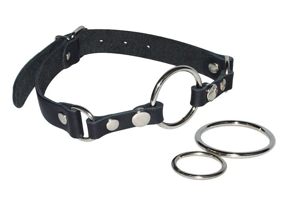 Черный кожаный кляп с 3 сменными кольцами