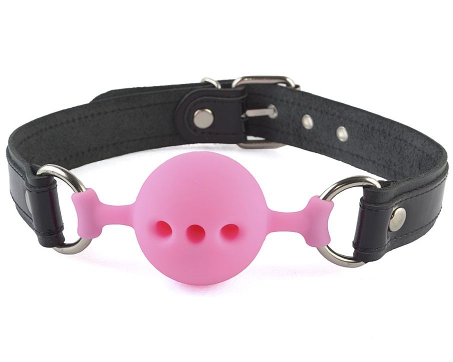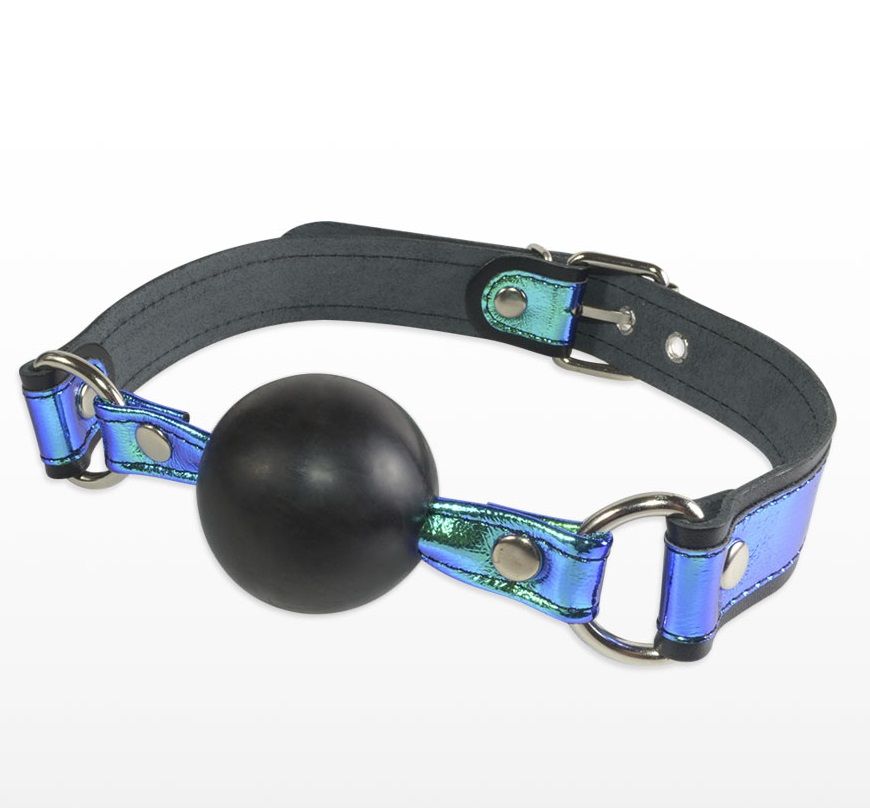 Эффектный девайс в виде сферического кляпа с яркими ремешками из натуральной высококачественной кожи..