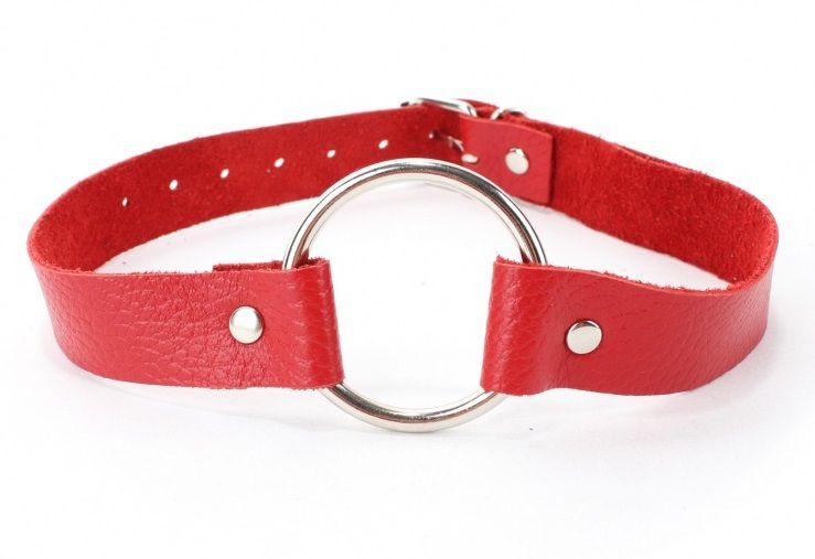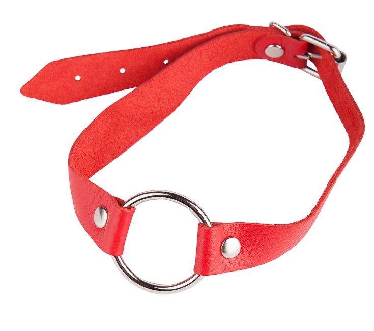 Красный кожаный кляп с кольцом