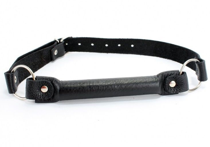 Черный кожаный кляп-трензель на кольцах