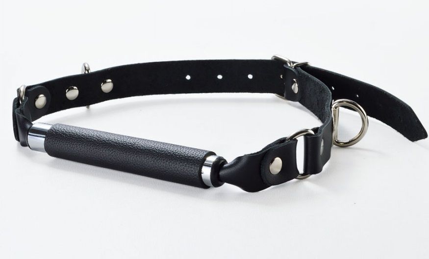 Чёрный кляп-трензель на кожаных ремешках с застёжкой