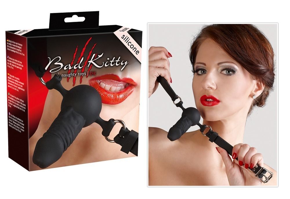 Чёрный силиконовый кляп-фаллос Bad Kitty
