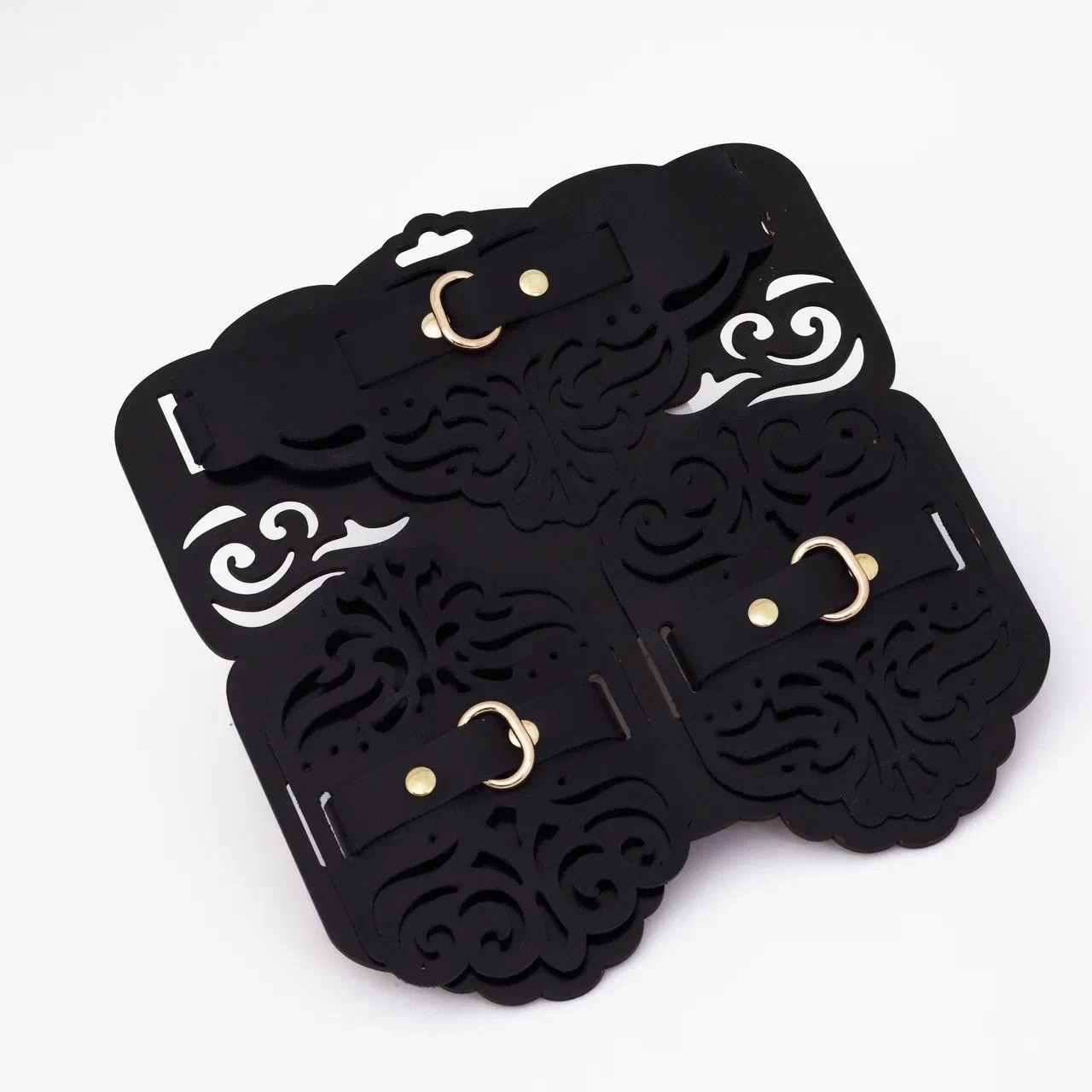 Фигурный набор для БДСМ-игр с узорами и золотистой фурнитурой