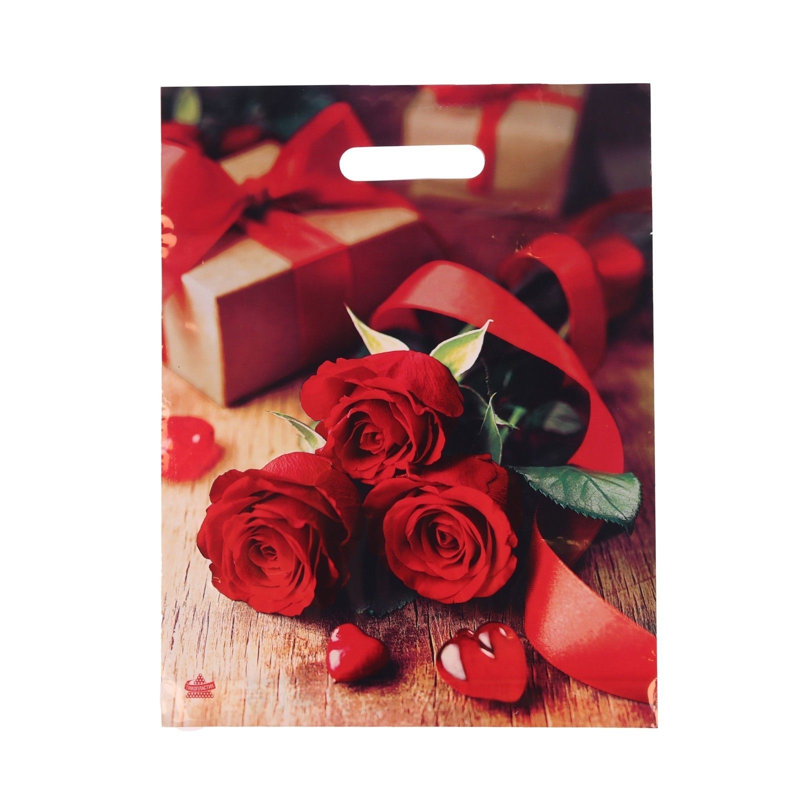 Пакет с принтом в виде банта с вырубной ручкой (30х40 см)