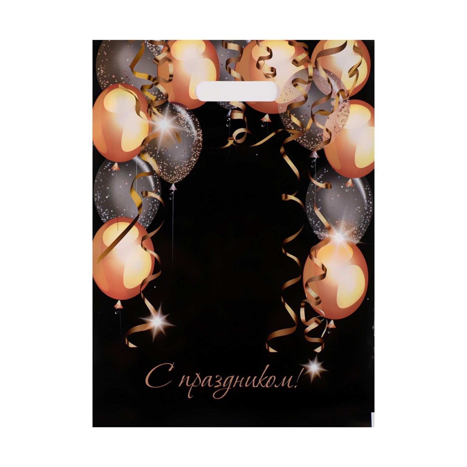 Пакет с вырубной ручкой и принтом в виде шариков (30х40 см). ..