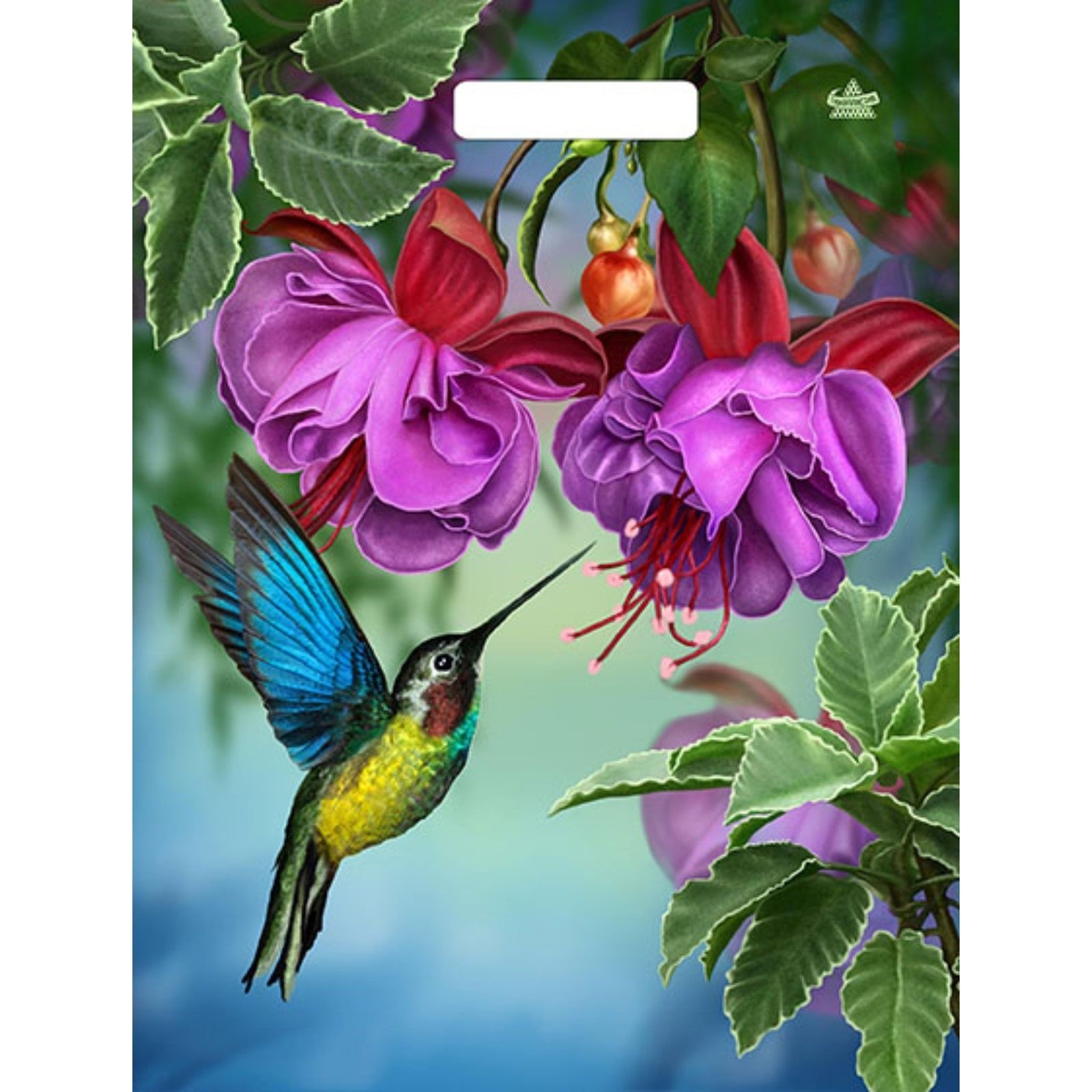 Пакет с принтом в виде колибри в цветах с вырубной ручкой (31х40 см)