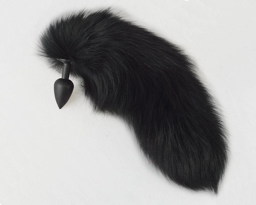 Черная анальная пробка с хвостом из черного песца