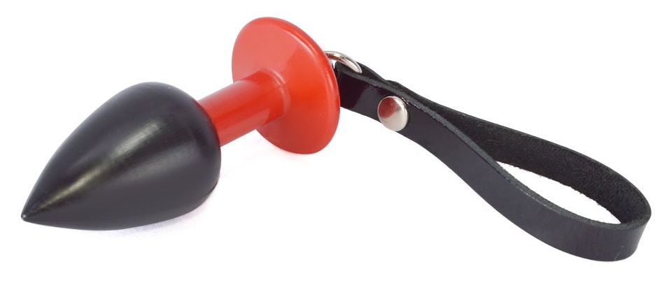 Черно-красная коническая анальная пробка с ремешком - 7 см.