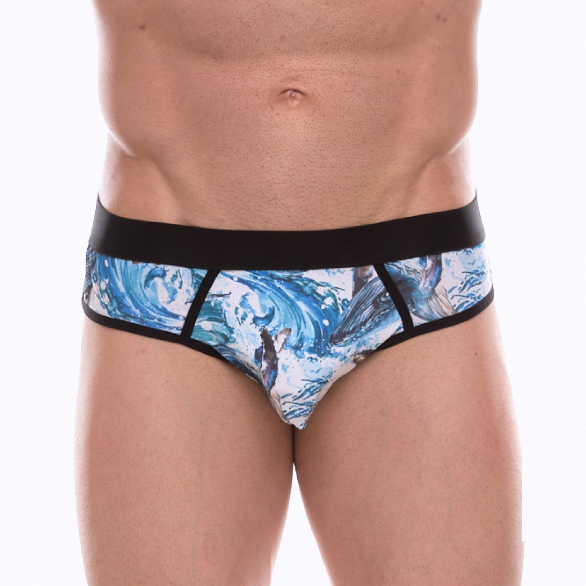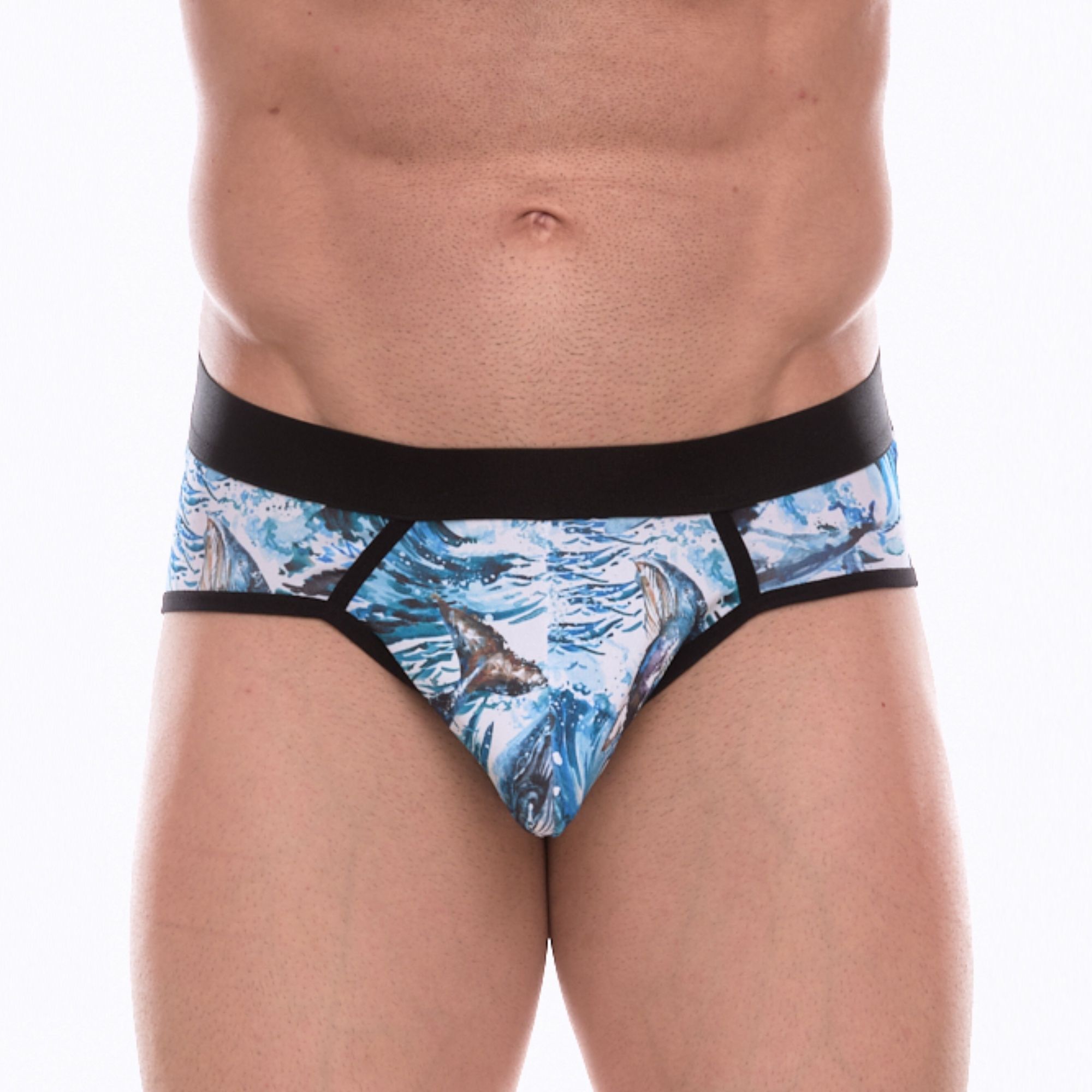 Мужские трусы-джоки с принтом в виде волн и китов