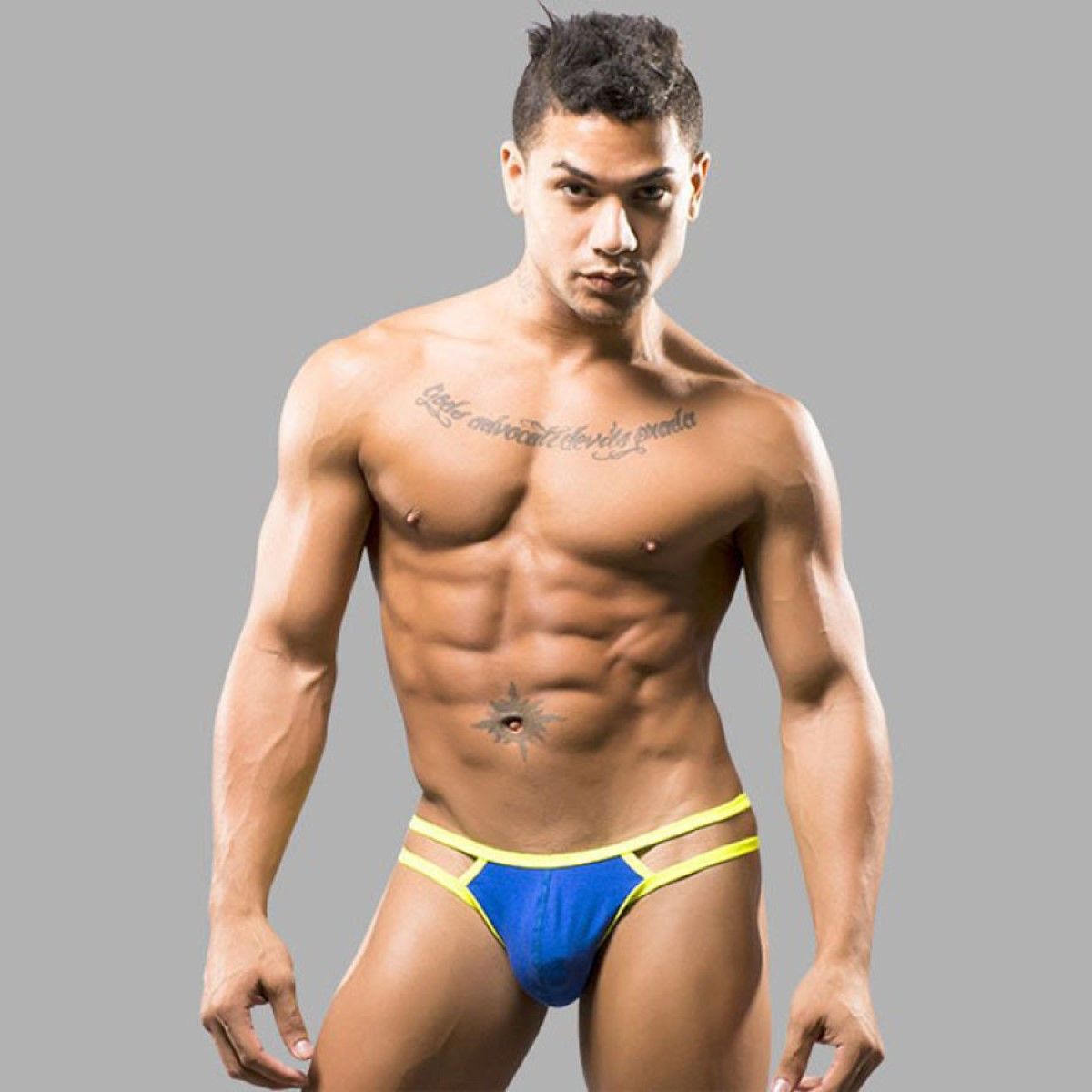 Синие мужские трусы-стринги с двойными бретелями. ..