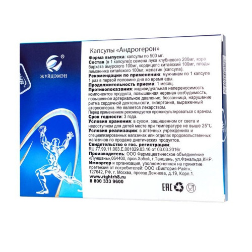 Биологически активная добавка к пище Андрогерон - 12 капсул (500 мг.) (Виктория-Райт 150120)