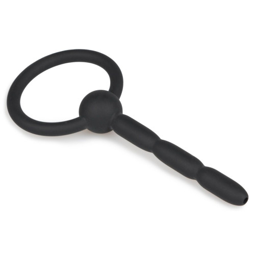 Черный силиконовый уретральный плаг Ribbed Hollow Silicone Penis Plug - 10,5 см.