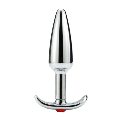 Алюминиевая анальная пробка для ношения с красным кристаллом - 10 см. (Kanikule AP-AL041M)